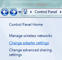 “Control Panel > Network and Sharing Center” and then select “Change adapter settings”