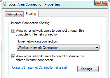 users to connect to and disable this computer’s internet connection.